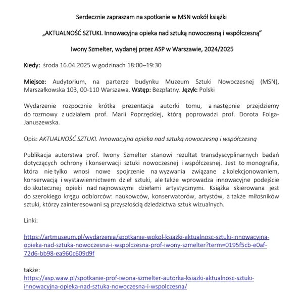zapraszamy na spotkanie w MSN wokół książki prof. Iwony Szmelter