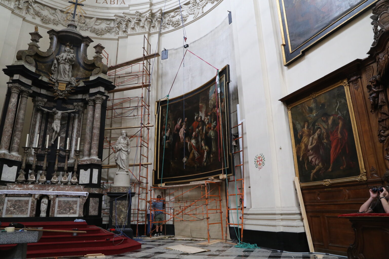 Prace konserwatorskie zostały zaprezentowane belgijskiej parze książęcej: księciu Laurent i księżniczce Claire podczas Święta Niepodległości w czasie uroczystości odbywających się w Katedrze Saint – Aubain w Namur, 21 VII 2014.