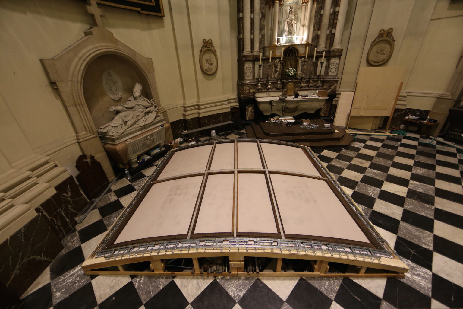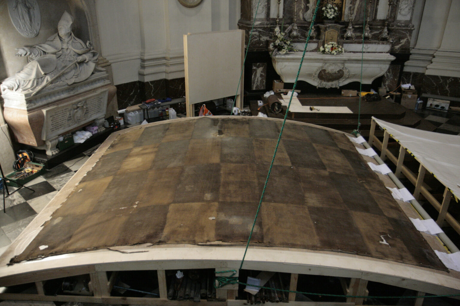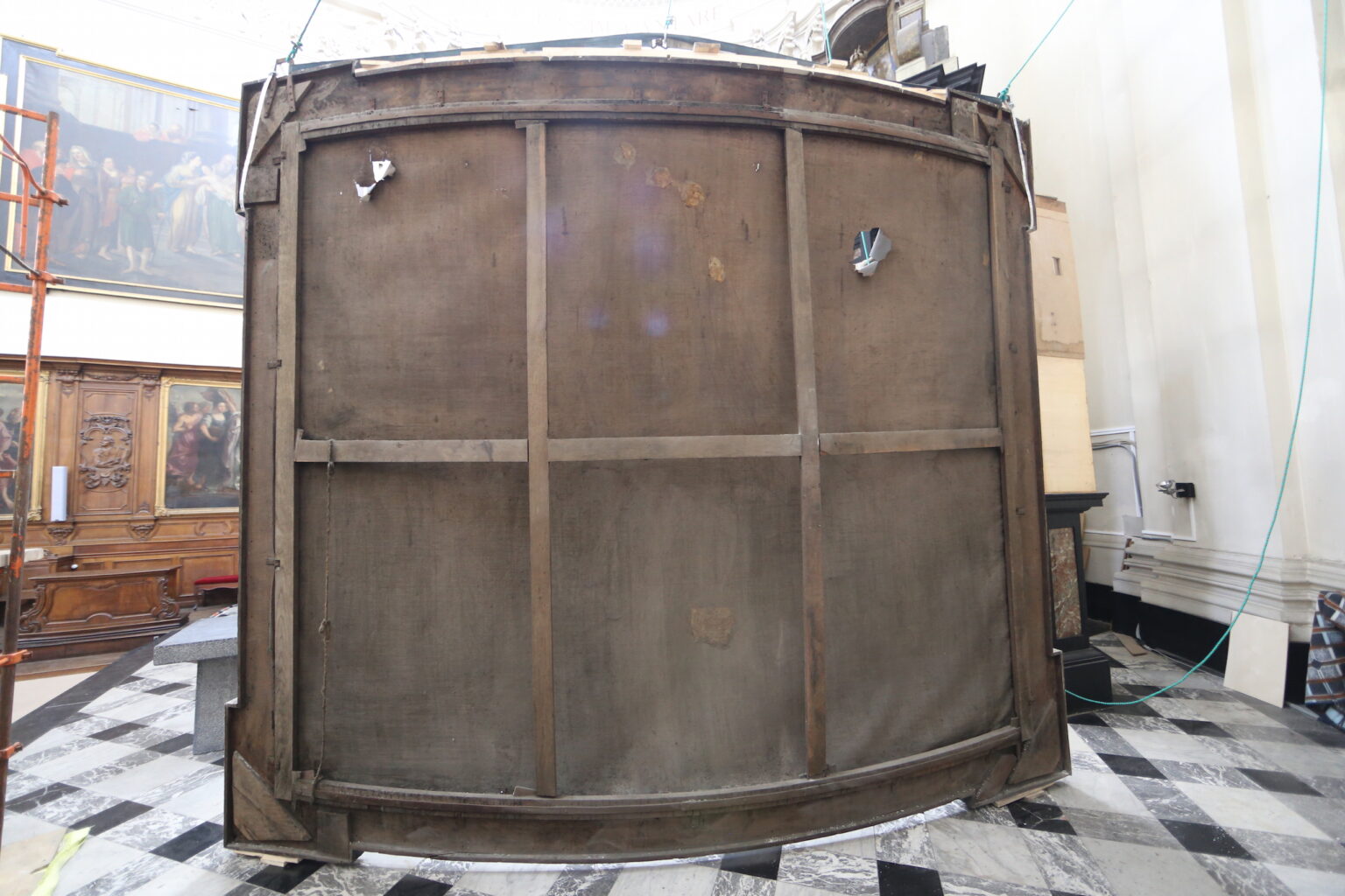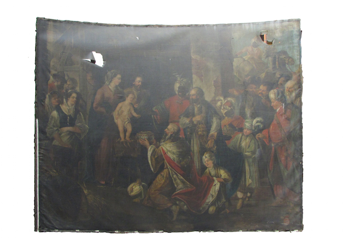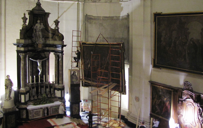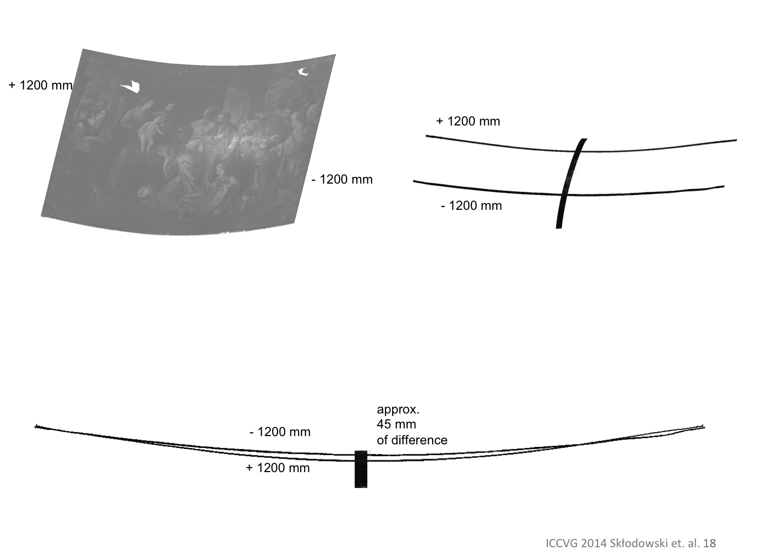 Wielkoformatowe obrazy o nietypowym wygiętym kształcie stanowią fenomen malarstwa barokowego i są niezwykle istotnym elementem dziedzictwa kultury europejskiej.  Ze względu na ogromne wymiary i nietypowy kształt konserwacja takich obiektów jest zadaniem wyjątkowo skomplikowanym, wymagającym często nowatorskich rozwiązań technicznych. Celem projektu było rozwiązanie kluczowego dla obrazów o dużym formacie problemu, związanego z deformacjami podłoża. Głównym zadaniem było opracowanie spójnego kompleksowego systemu zdalnych, optycznych badań deformacji malowideł na płótnie, które uzupełniłby tradycyjne analizy fizyko-chemiczne i mikrobiologiczne. W ramach projektu zrealizowano prace badawcze i eksperymentalne przy krzywoliniowym obrazie Mauritiusa Heinricha Lodera „Pokłon Trzech Króli” o wym. 450 x 370 cm i wadze 280 kg (!) z katedry Saint – Aubain w Namur (Belgia). Wykonano trzy cykle badań pomiarowych za pomocą skanerów laserowych i technik fotogrametrycznych: