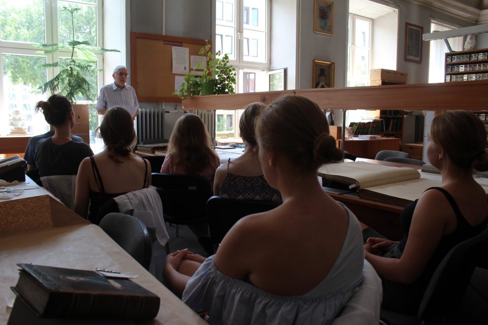 Podczas praktyk studenci wysłuchali wykładu o historii księgozbioru Biblioteki Warszawskiej ASP przygotowanego przez Dyrektora Biblioteki Włodzimierza Daszewskiego.