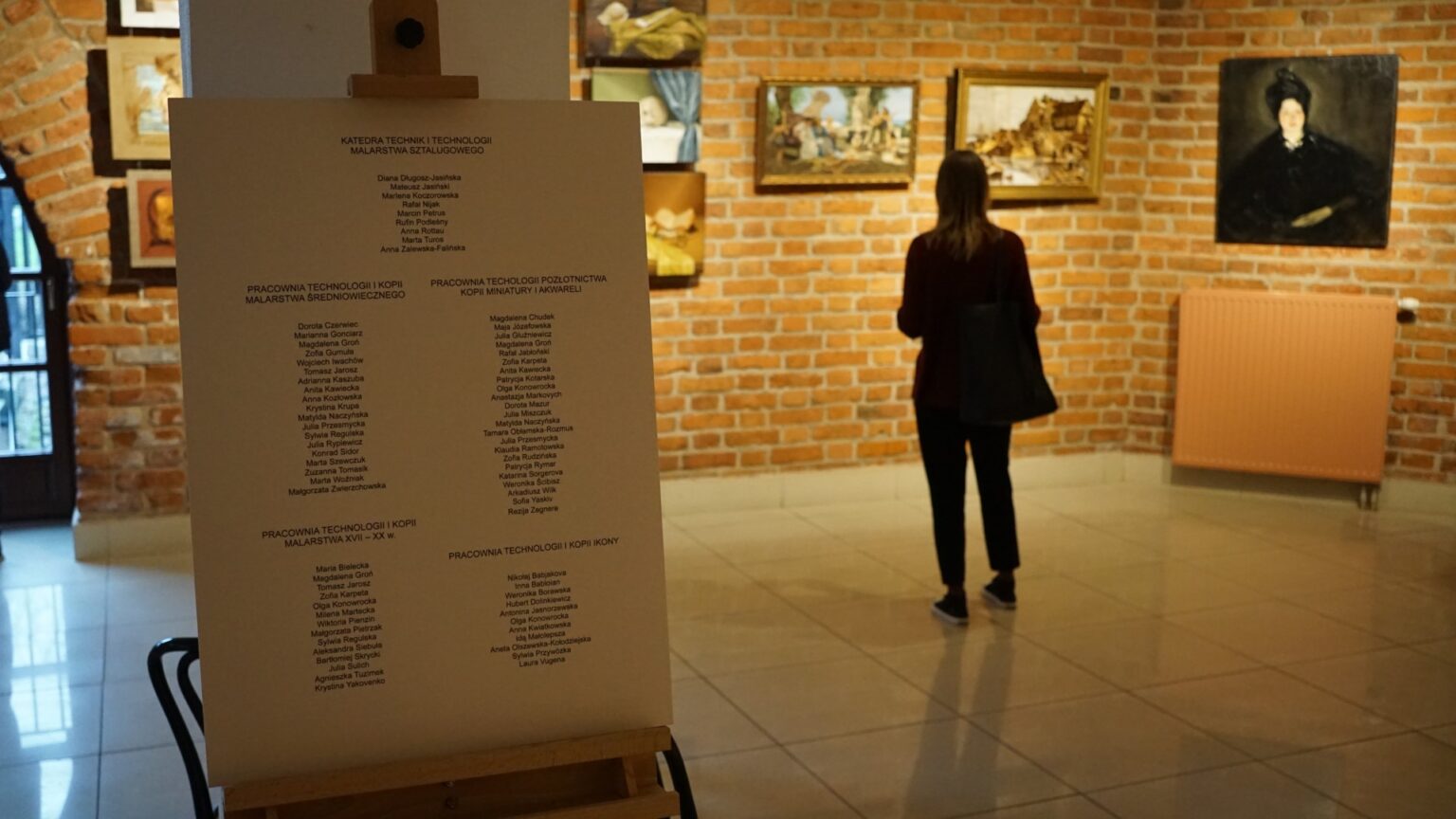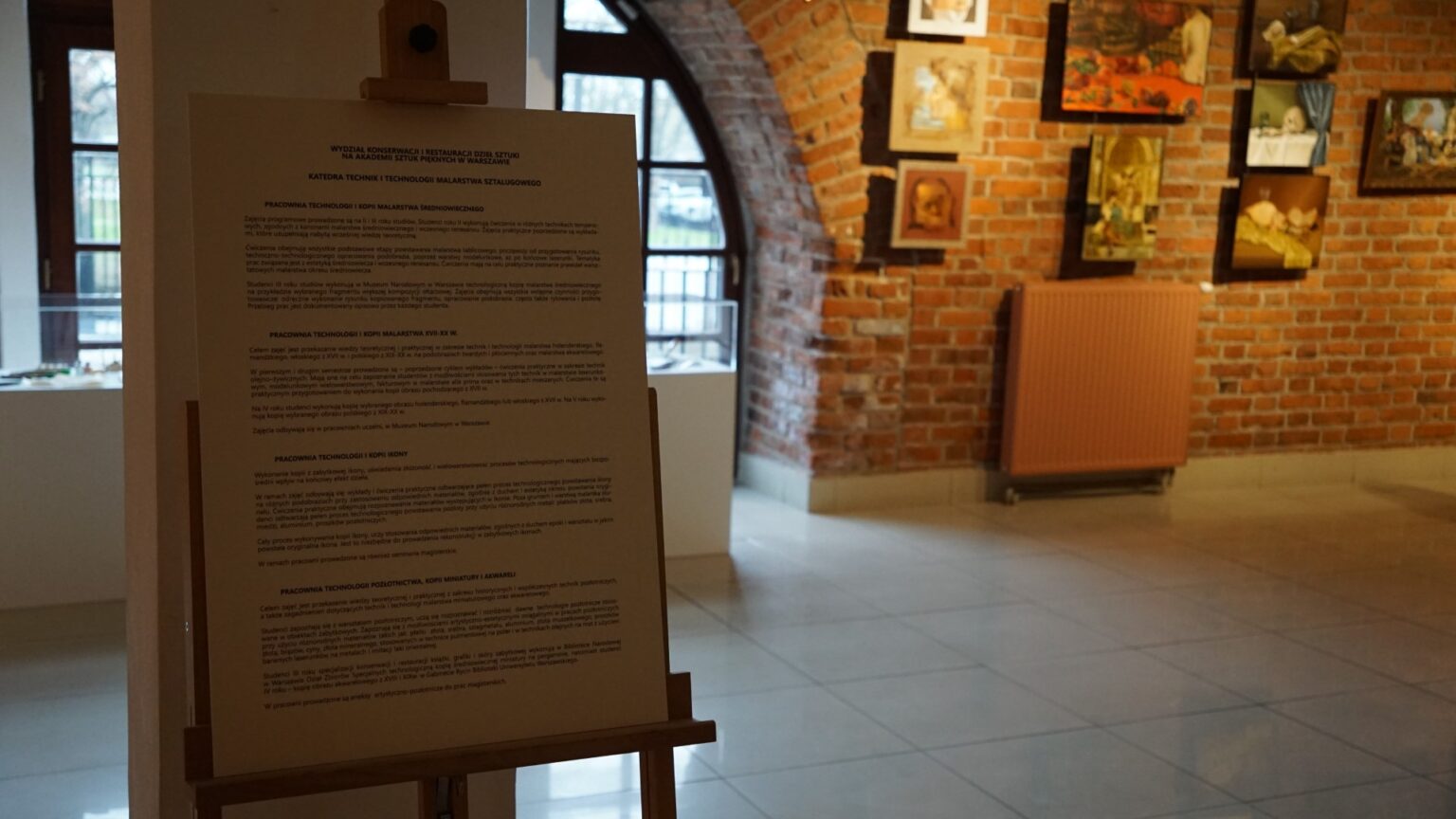 Na ekspozycji prezentujemy obrazy wykonane przez studentów i absolwentów WKiRDS na ASP w Warszawie. Prace powstały w ramach działalności pracowni Katedry Technik i Technologii Malarstwa Sztalugowego i obejmują:
