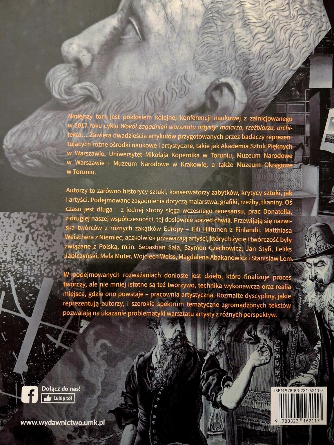 Niniejszy tom jest pokłosiem kolejnej konferencji naukowej z zainicjowanego w 2017 roku cyklu Wokół zagadnień warsztatu artysty: malarza, rzeźbiarza, architekta… Zawiera dwadzieścia artykułów przygotowanych przez badaczy reprezentujących różne ośrodki naukowe i artystyczne, takie jak Akademia Sztuk Pięknych w Warszawie, Uniwersytet Mikołaja Kopernika w Toruniu, Muzeum Narodowe w Warszawie i Muzeum Narodowe w Krakowie, a także Muzeum Okręgowe w Toruniu.